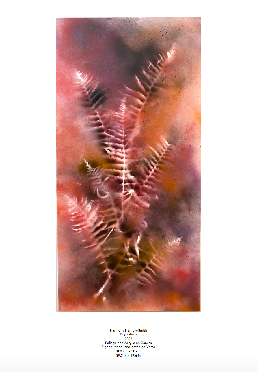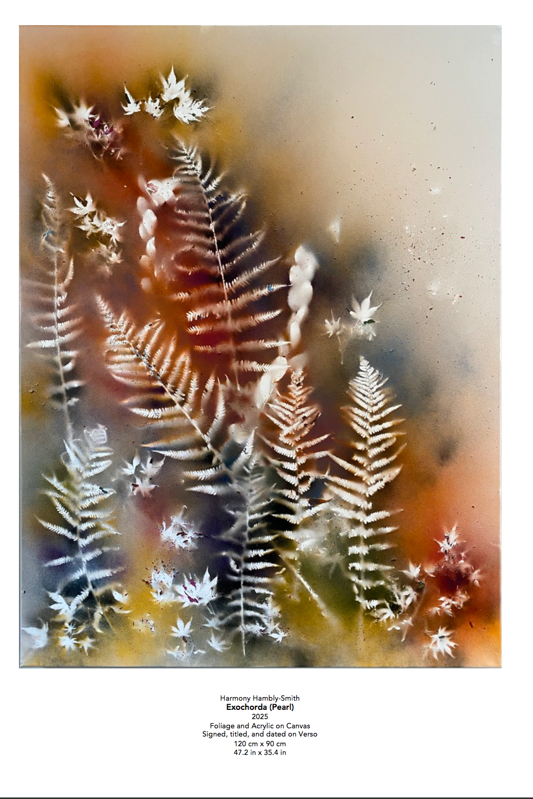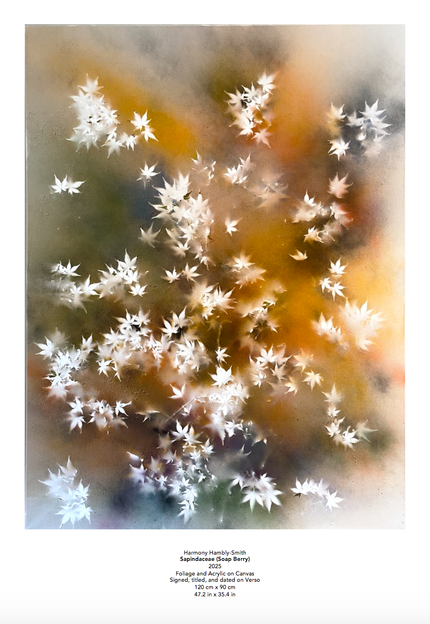 This latest body of work represents the culmination of years of exploration. an artistic language refined through study, experience, and deep immersion in both natural and cultural worlds. Her distinctive process - painting with nature rather than about it, speaks to an evolved sensibility that fuses aesthetic precision with environmental consciousness.