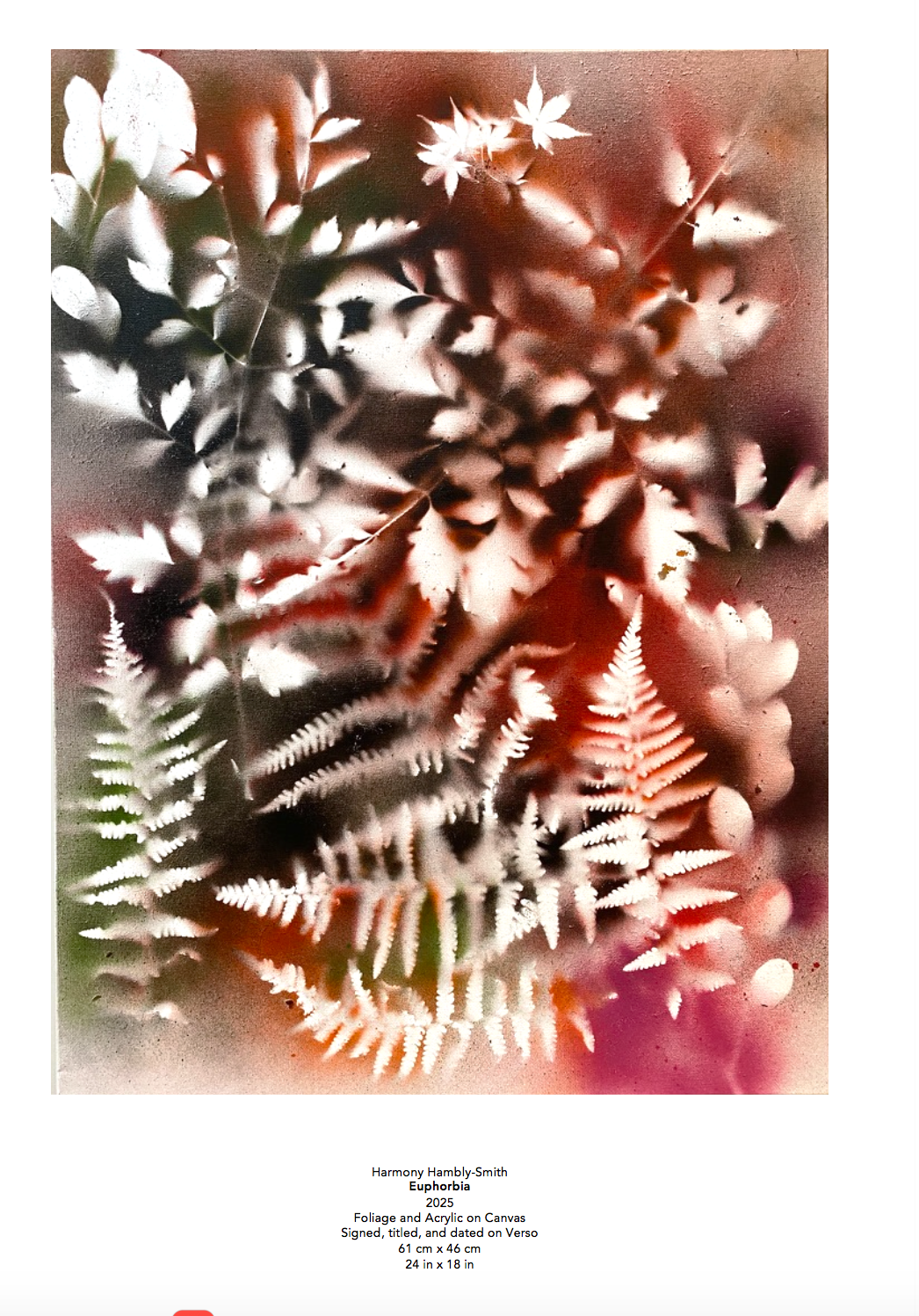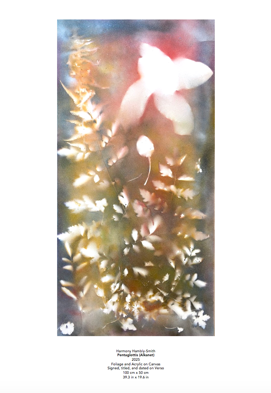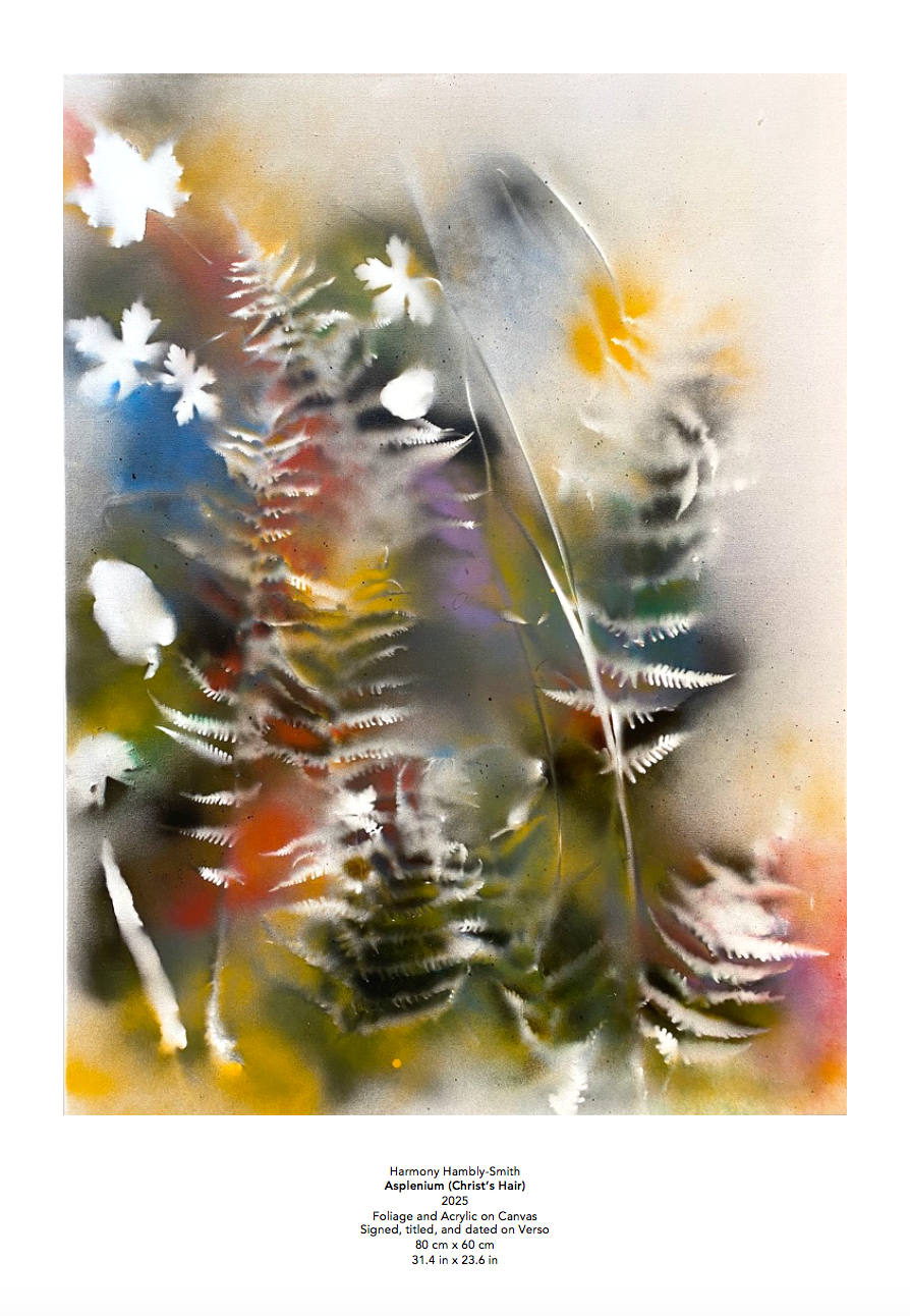 This latest body of work represents the culmination of years of exploration. an artistic language refined through study, experience, and deep immersion in both natural and cultural worlds. Her distinctive process - painting with nature rather than about it, speaks to an evolved sensibility that fuses aesthetic precision with environmental consciousness.